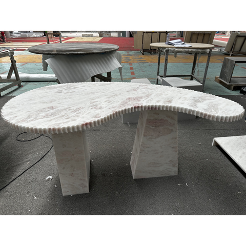 SH Stone travertine คอนโซลโต๊ะหินอ่อนสีเบจขอบหยักออกแบบบ้านทางเข้าห้องโถงศิลปะห้องนั่งเล่นเฟอร์นิเจอร์