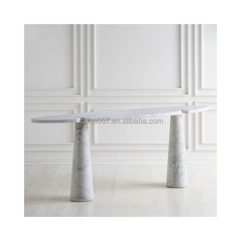 SH pietra di marmo bianco consolle da tavolo con ingresso moderno tavolo da soggiorno mobili a forma di mezzaluna con bordi seghettati