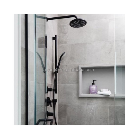 SH STONE Badezimmer zubehör Kunden spezifischer hellgrauer Kunststein-Marmor-Wand einsatz Doppelschicht-Dusch-Nischen-Kit